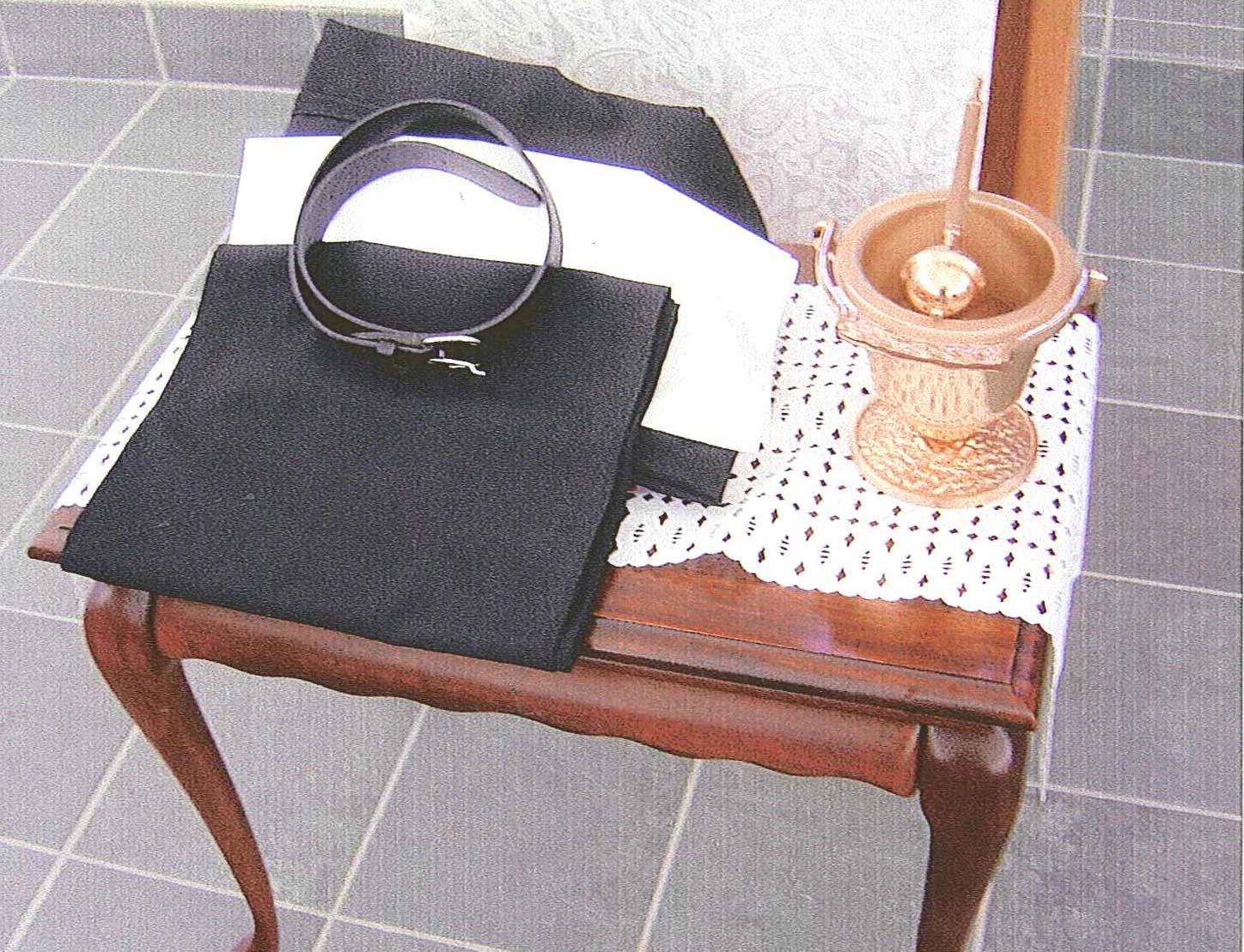 The tunic, scapular, cincture and veil to be blessed for a new novice.